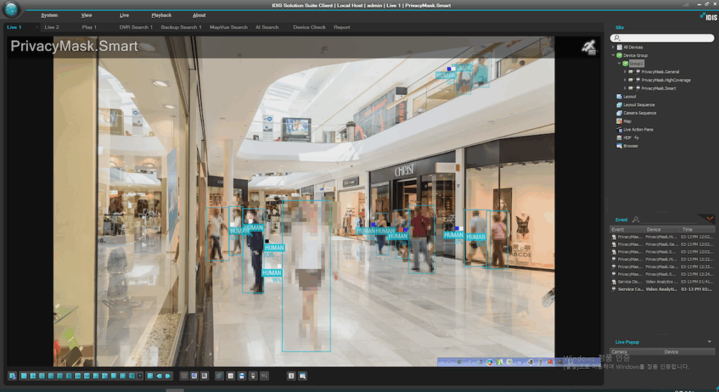 At the heart of this innovation is the IDIS Deep Learning Engine, which adjusts mosaic strength dynamically to maintain visibility of movement and actions, without revealing identities. Unlike basic masking overlays, the Smart Privacy Masks integrate with IDIS Solution Suite (ISS), enabling finely tuned object detection and scene analysis without overloading network or processing resources.